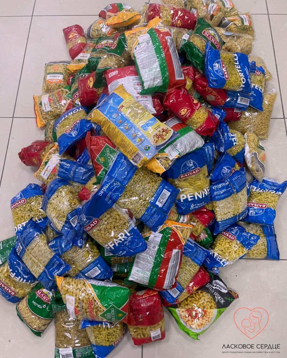 Этот продукт был выбран не случайно: макароны долго хранятся, не портятся и их любят дети. Такая помощь действительно практична и будет востребована в каждой семье!